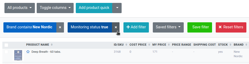 This functionality allows for efficient product management, enabling you to quickly access and analyze subsets of your product inventory based on specific criteria.